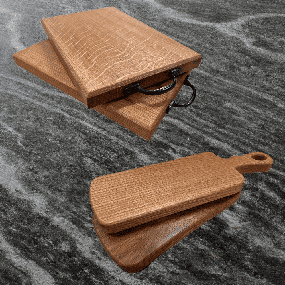 Our woodworking team repurpose offcuts from the manufacturing process of other products and turn them into the highest quality solid oak chopping boards, charcuterie boards and more.